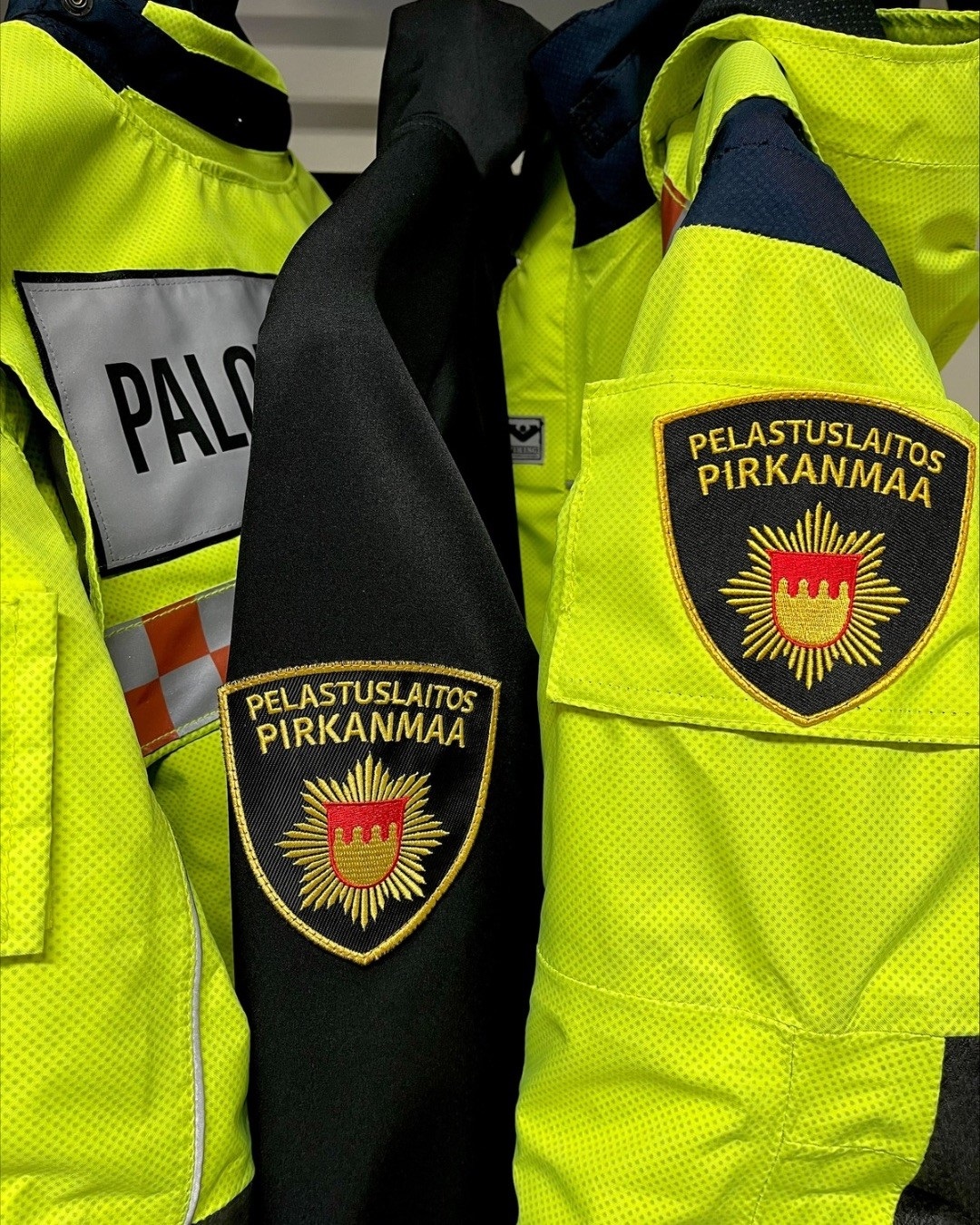 Kuva: Pelastustoimen virka-asusteissa on pelastuslaitoksen vaakuna.